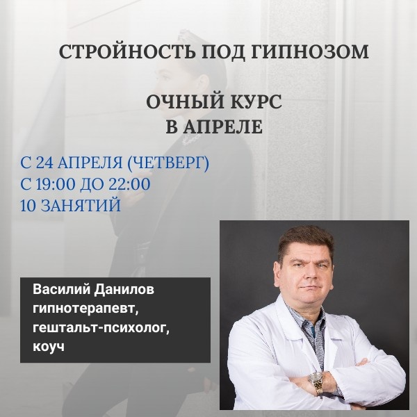 «целительная среда хорошей группы терапии почти осязаема, и когда входишь в ее ауру, случаются замечательные вещи» Ирвин Ялом Апрель плотно вступил в свои права. Не за горами май — июнь — июль, когда количество одежды, которая может прикрыть предательские складки на теле и жировые отложения становится всё меньше и меньше… Традиционно стартует мой весенний курс «СТРОЙНОСТЬ ПОД ГИПНОЗОМ» В этом году будет новый, ещё более эффективный формат работы. 10 встреч очно, 1 раз в неделю. По четвергам с 19:00 до 22:00 ЧТО БУДЕТ В ПРОГРАММЕ: Как всегда будут сеансы гипноза с установками на стройность. Проработка внутренних установок, которые мешают стать стройной. Установки на новое пищевое поведение. НОВОЕ В ПРОГРАММЕ: Поддержка от ведущего и участников группы, научитесь правильно оказывать поддержку окружающими