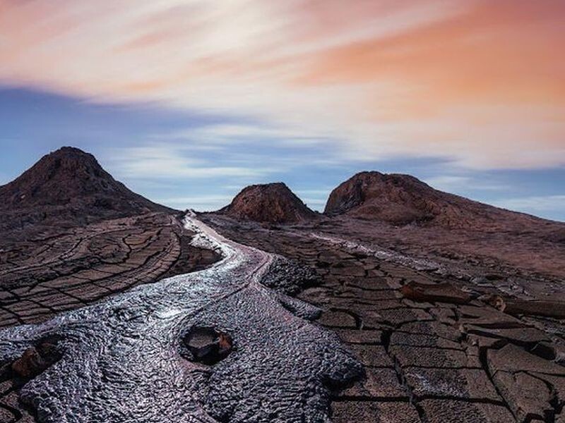 Затем вас ждут грязевые вулканы — настоящие природные чудеса. Потрескавшаяся земля, бурлящие сопки и густая грязь создают пейзаж, словно с другой планеты.