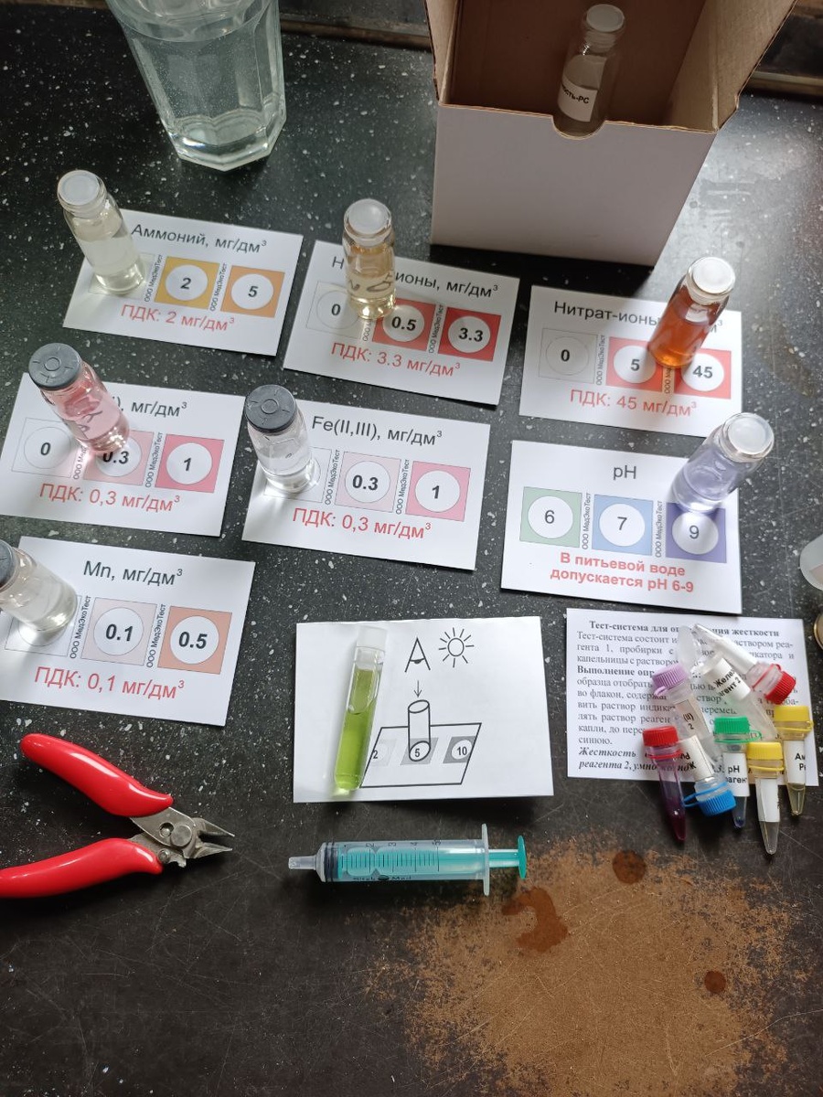 Колодец почистил, фильтры ещё не ставил, муть всё ещё идёт, сливаю по ходу пользования. И решил глянуть, насколько всё критично с водой. Модно ли её применять. Взял давно просроченные тест-компоненты. На 14 лет просрочены. Уж и жёсткость не определить, высохло, и pH затвердел компонент. Думаю хоть пусть и будет погрешность, но глянем, насколько всё критично. Только нитрат-ионы выше среднего, но в пределах норм. Всё остальное даже ниже среднего (чище т.е.). А вот EC воды 127ppm. В баклажках обычно выше 200ppm.