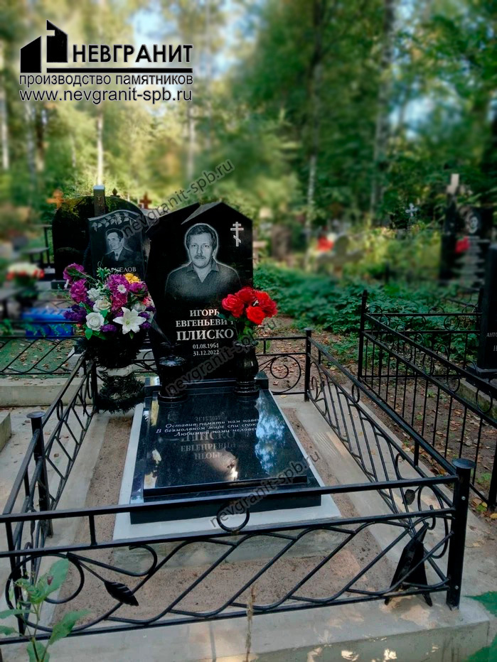 Выбор памятника для ушедшего близкого – непростое решение. Хочется, чтобы он был не только долговечным, но и отражал характер и личность человека, напоминая о нем любящим сердцем. Сегодня мы рассмотрим один из примеров ритуального оформления, выполненный компанией "Невгранит", и обсудим, на что стоит обратить внимание при выборе. Взгляд на детали: пример памятника Игорю Плиско На фото вы видите мемориальный комплекс, выполненный из черного гранита. Доминирующим элементом является вертикальная плита с портретом Игоря Евгеньевича Плиско (01.08.1961 - 31.12.2022). Выбор черного гранита – классическое решение, символизирующее скорбь и уважение. Над портретом выгравирован крест, что говорит о религиозных взглядах усопшего. Обратите внимание на следующие детали: • Качество портрета: Четкое и выразительное изображение позволяет сохранить образ человека в памяти. • Камень: Черный гранит – прочный и долговечный материал, устойчивый к воздействию окружающей среды. Он сохранит свой первозданн