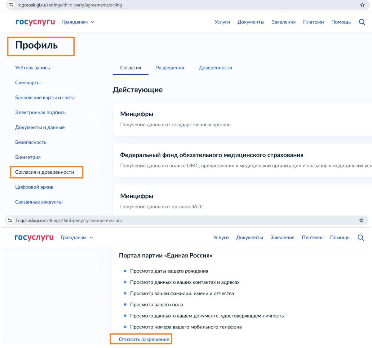 На Госуслугах в разделе "Профиль" — "Согласия и доверенности
