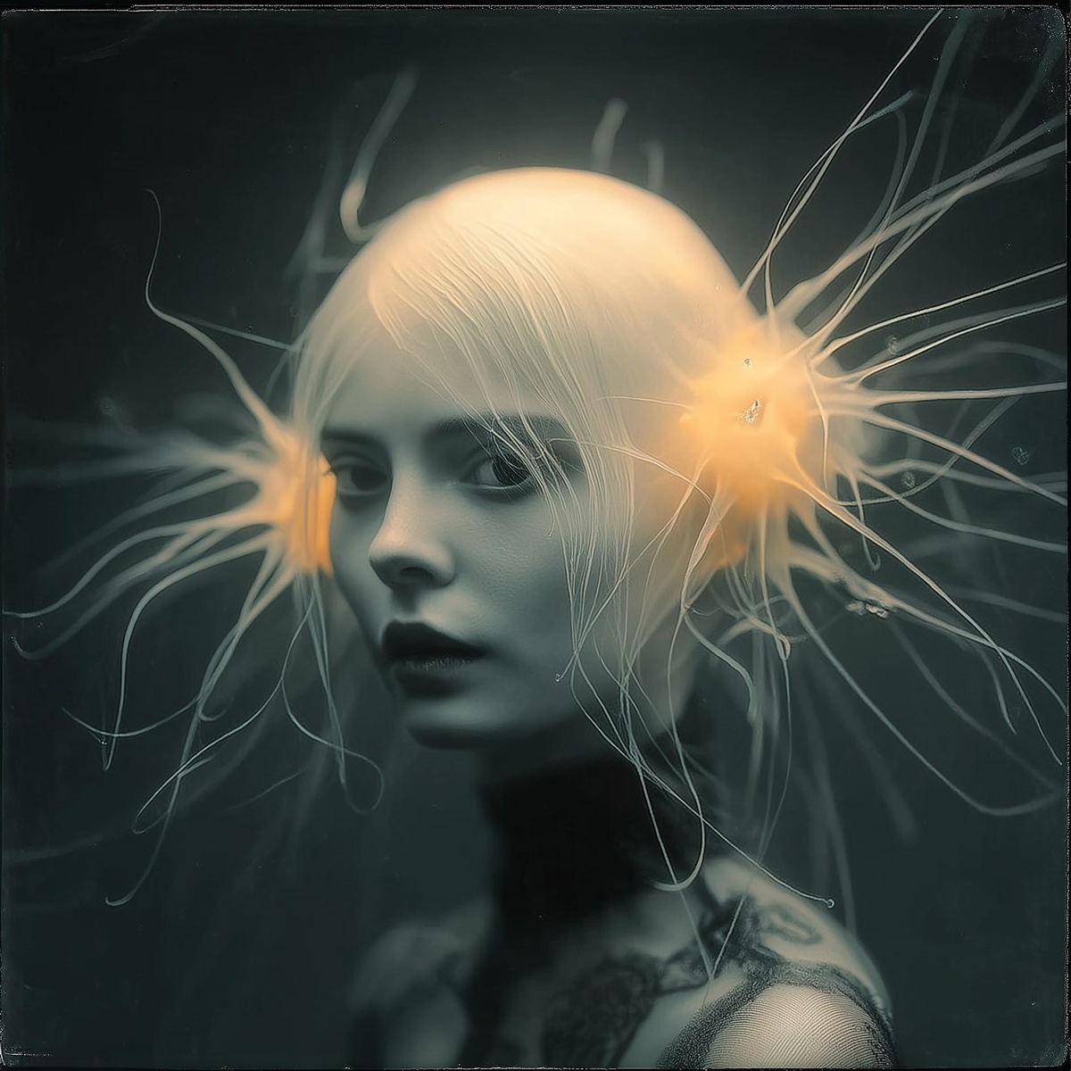 Создано на основе запроса: dark art photography, strange biological creatures, dark occult imagery, loss, shallow depth of field, bokeh