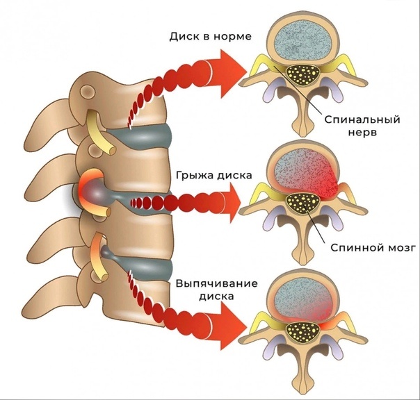 1. Боль в спине — часто начинается с умеренной ноющей боли, которая усиливается при физической нагрузке, длительном сидении, кашле или чихании.