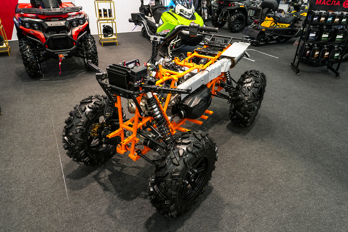 Впервые увидел такое воочию не на заводе, а на выставке, но увиденное того стоит. Русская Механика поставила на стенд настоящий "нейкед", а точнее голый квадроцикл RM, на примере которого можно рассмотреть в подробностях всю начинку и конструкцию. Когда видишь 3D-модели рамы или готовый "квадрат", то особо не думаешь, как он выглядит без обвеса, а оказалось довольно интересно. Признаюсь, RM сумели удивить и привлечь внимание. Я с большим удовольствием изучал компоновку узлов, хотя до этого представлял себе общую картину. С другой стороны, "обнаженка" выглядела совсем не продаваемо. Разве можно сравнить с готовым продуктом?! Как считаете? Подробный отчет о выставке "МОТОВЕСНА 2025" можно почитать в отдельной публикации со всеми подробностями: Или посмотреть небольшое видео: