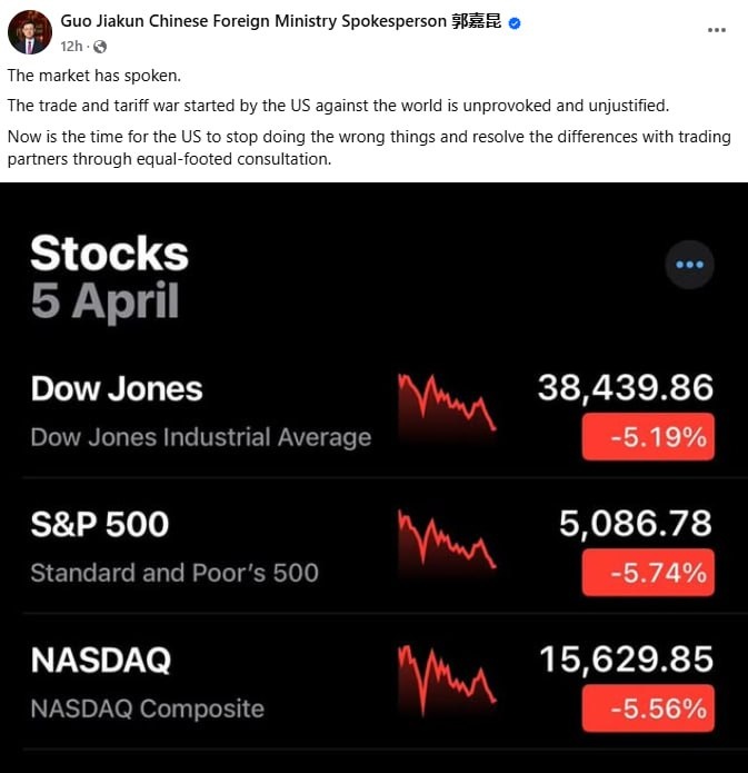 China's FM Spox on Trump's tariffs: the market has SPOKEN