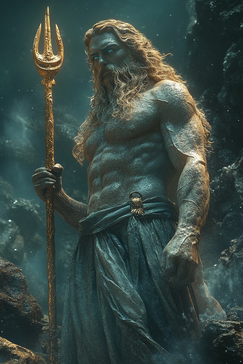 Создано на основе запроса: poseidon, con tridente dorado grande, Cinematic ambient , hyper detail, Vfx , tsunami, tormenta de rayos, agua