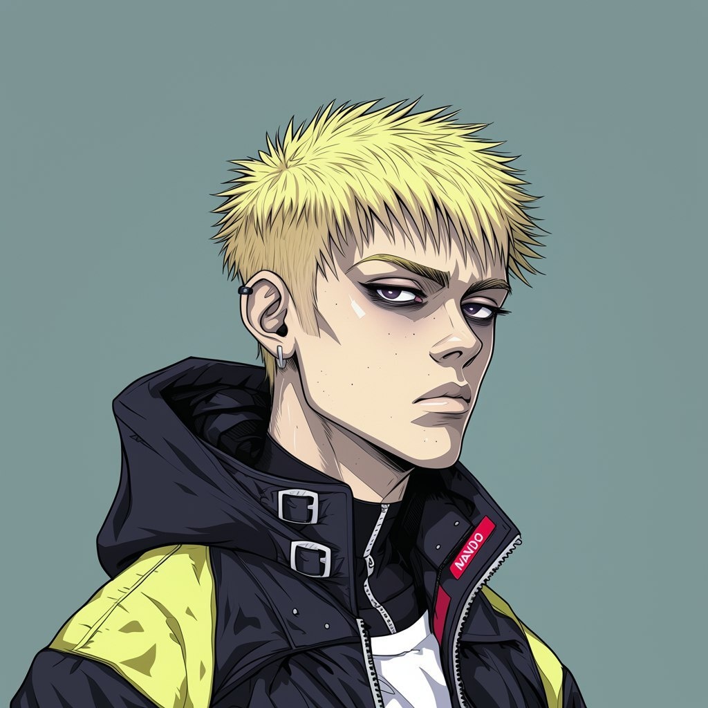 Создано на основе запроса: profile portrait Katsuhiro Otomo - Akira style, male charachter, black piercing eyes, blonde --- Автоперевод: Портрет профиля Katsuhiro Otomo - стиль Акира, мужской персонаж, черные пирсинговые глаза, блондинка Необычно выглядит? 🤔 https://dzen.ru/id/65c0c65c86e4f837c27b24d7 #ИИ #AI #нейросеть #midjourney #art