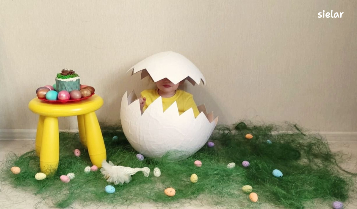 Добрый день, дорогие мои! Сегодня расскажу, как делала яйцо из папье-маше для того, чтоб сфотографировать ребёнка в светлый праздник Пасхи. Яйцо из папье-маше – это не просто реквизит, а целый проект, в который можно вовлечь всю семью, превратив подготовку к празднику в увлекательное творческое занятие. Первый этап – подготовка основы. Использовала большой воздушный шарик, обклеила кусочками офисной бумаги, смоченными в клее ПВА. Следующий слой клеила, только после полного высыхания предыдущего. Приклеивала сверху и снизу. Середину шарика не трогала. Я хотела, чтоб было 2 части "скорлупы". Семь слоёв папье-маше обеспечат прочность и необходимую форму. После полного высыхания шарик сдула и аккуратно извлекла. Ножницами вырезала неровные края. Далее – оформление. Здесь открывается простор для фантазии! Можно использовать всё, что подскажет воображение. Первым делом, конечно же, подготовила реквизит. Купила милые пасхальные украшения: разноцветные пенопластовые яйца, зеленый сизаль д
