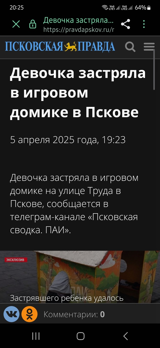 В древнем и славном городе, На улице, кстати, Труда Застряла девочка в "домике",- Вы скажете, что ерунда! Что домик совсем игрушечный, Ей надо по попе дать, И больше на выстрел пушечный Её туда не пускать... И что не нужны тут психологи, И справились без МЧС, Ребёнок, подумаешь с дуру, В окошко играть полез... Чего расшумелсь, распостились? Захочет, пусть лезет опять! Всем хочется спрятаться в "домике", А лет ей? - Да так, тридцать пять... 05.04.2025