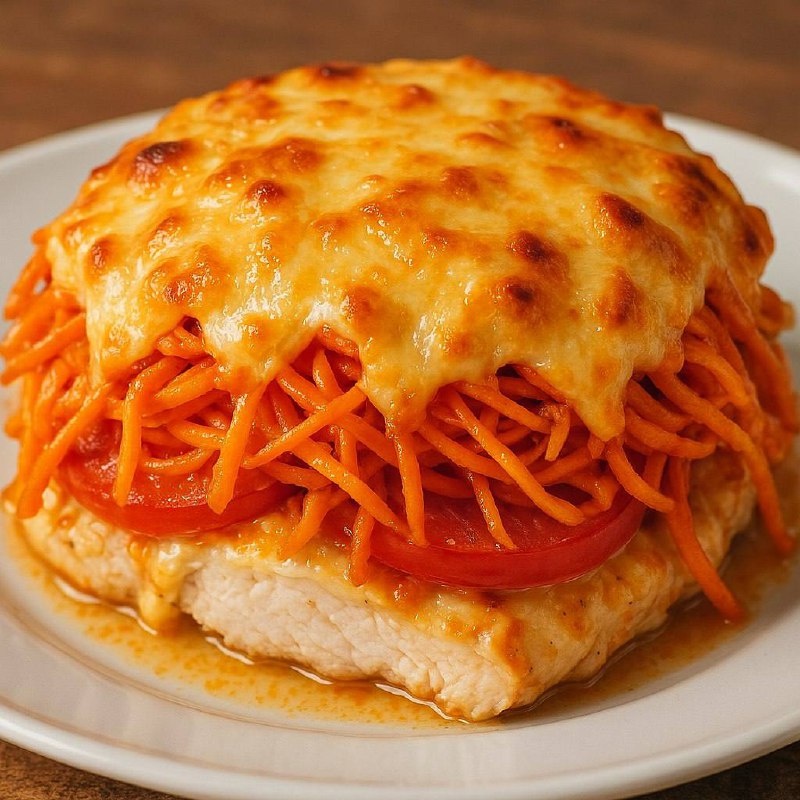🔥 МЯСО ПО-ЧЕШСКИ С ТОМАТАМИ И КОРЕЙСКОЙ МОРКОВЬЮ Изысканное сочетание нежной курицы, сочных томатов и пикантной морковки под хрустящей сырной корочкой! --- 🍽 ИНГРЕДИЕНТЫ - Куриное филе — 300 г - Помидоры — 1-2 шт. - Морковь по-корейски — 100 г - Твердый сыр — 50 г - Майонез — 2 ст.л. - Масло растительное — 0,5 ч.л. - Соль, перец — по вкусу --- 👨🍳 ПОШАГОВОЕ ПРИГОТОВЛЕНИЕ 1. Подготовка курицы - Форму смазываем маслом - Филе режем как вам захочется, выкладываем, солим и перчим 2. Формируем слои - На курицу → помидоры полукольцами - Смешиваем морковь с майонезом → выкладываем сверху 3. Финишный штрих - За 5-10 минут до готовности посыпаем тертым сыром - Запекаем при 190°C 25-30 минут --- ✨ 3 ПРИЧИНЫ ПОПРОБОВАТЬ ✔ Сочность – помидоры идеально дополняют курицу ✔ Пикантность – морковь по-корейски с майонезом ✔ Хрустящая корочка – сыр добавляем в конце Идеальная подача: с картофельным пюре или рисом Приятного аппетита! #моикотлеты