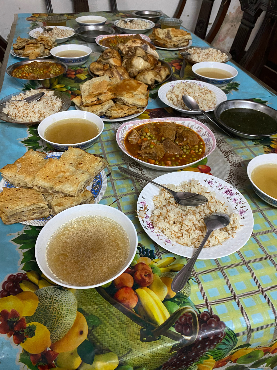 Вот и подошло к концу мое пребывание в Танте. За эти 7 дней мне удалось попробовать все традиционные блюда Египта. Поэтому сделаю небольшой фото- обзор. 1 день окончание поста Рамадан. Суп, Руа ( пирог с фаршем), Беселя ( рагу из зеленого горошка), рис с шаарей ( рис с маленькими макаронами). 2 день Запеченная рыба с коричневым рисом 3 день Хавауши ( хлеб с начинкой из фарша) 4 день Махши 5 день Фисих. 6 день Мясной гриль 7 день Фаршированный голубь. Хочешь узнать больше о египетских аптеках]? Заходи в мой канал — делюсь полезной инфой, реальными примерами и лайфхаками! Подписывайся: