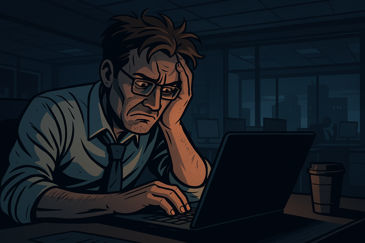 В 7:00 он уже ехал на работу, не ощущая себя человеком. В голове вибрировала мысль: «Я не могу потерять контроль». Но тело подсказывало другое: ещё чуть-чуть — и случится коллапс.