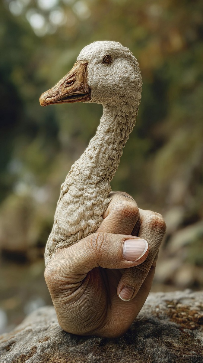 Создано на основе запроса: a hand shaped goose, flipping off the wolrd, the mkddle finger is the goose's head