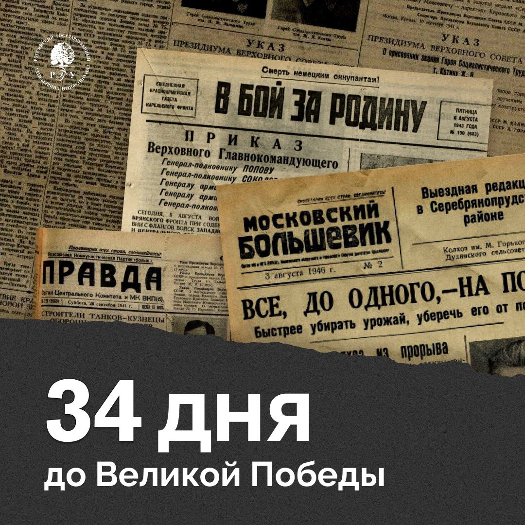 ▎ 34 дня до Великой Победы ⬆️ О том, что было 5 апреля в годы Великой Отечественной войны, читайте в карточках ⚪ Подписаться на РГГУ #РГГУ #100ДнейДоВеликойПобеды #ДеньПобеды #ВОВ #ВеликаяОтечественная #История #80летПобеды #НаучныйПолк #НаучныйПолк2025