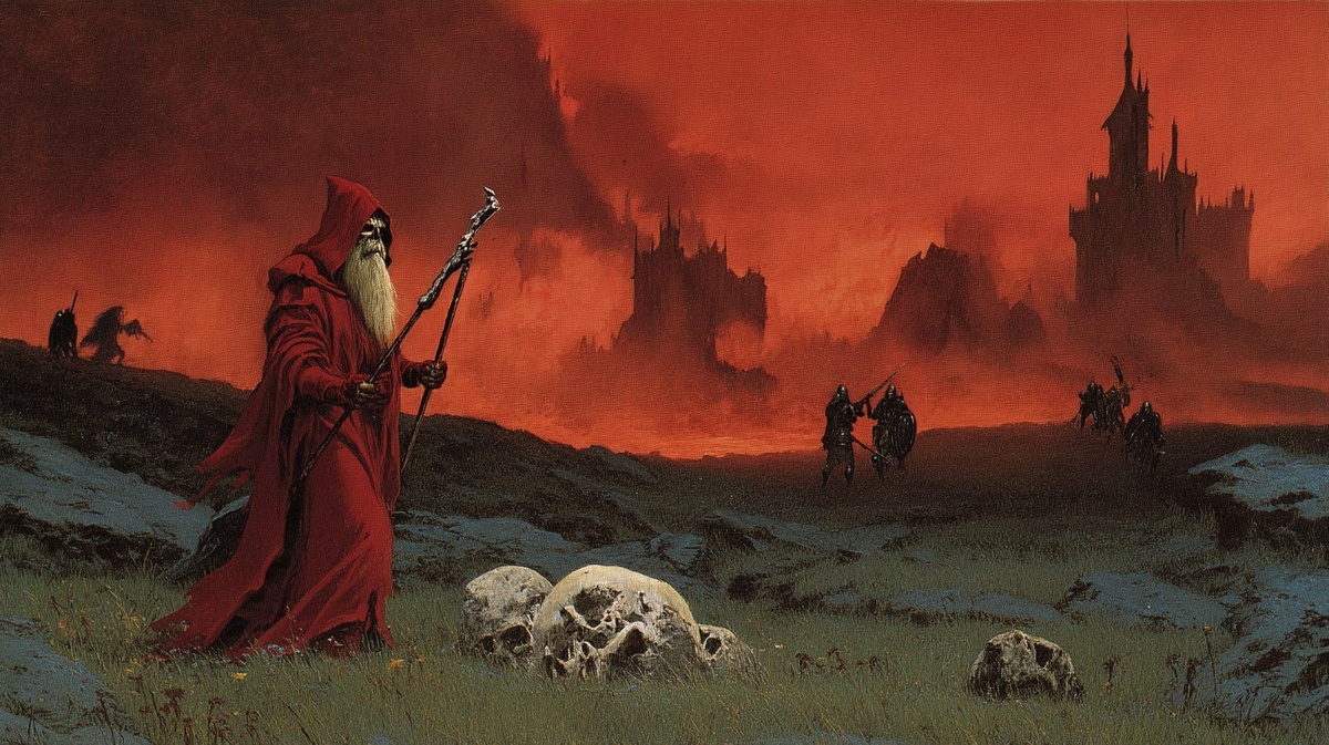 Создано на основе запроса: the cursed wizard of the forsaken kingdom in dnd illustration by joe webb joe jusko tim white ted nasmith toshio