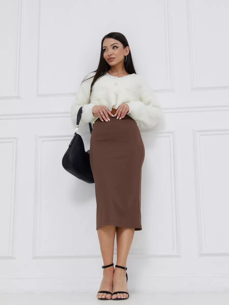 #Весна2025 #Юбка Юбка Базовая юбка карандаш. Фасон миди, с завышенной талией. Отличный вариант для создания стильного и трендового образа в любое время года. ✍️ Артикул: 225684971 👌Размеры: от 40 до 50 💵 Цена всего от 841 ₽ 👉Юбка тут👈 _______ Как тебе❓ ❤️ / 💔 Топовый look с Wildberries 💶💵💴