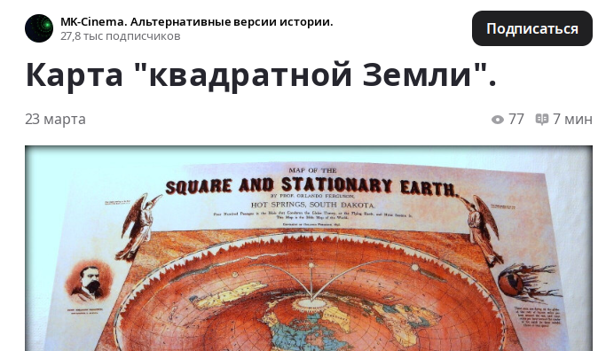 На скамье подсудимых вновь заслуженный рецидивист от нетрадиционной псевдо-истории Автор в своей фирменной агрессивно-истероидной манере ...паразитическая сатанинская сила финансирует деятельность наемных «говорящих голов»... ...эти глобалисты-люцифериане... ...официалы и сатан-масонская «Википедия»... накидывается в очередной раз на науку нормального человека. И, как уже понятно, решает он опровергнуть факт того, что планета Земля имеет сферическую форму. И кого же берёт в союзники автор? профессором Орландо Фергюсоном из Южной Дакоты (США) в 1893 году Собственно, об этом человеке известно то, что он был управляющим магазином, потом попытался открыть собственный бизнес, но погорел. А известность ему принесла как раз оригинальная карта Земли. Примечательна не сама карта, а надписи вокруг Эти люди летают по земному шару со скоростью 65 000 миль в час вокруг Солнца и 1042 мили в час вокруг центра Земли (в их воображении). Подумайте об этой скорости! Намекая, что будь так быстро, мы бы
