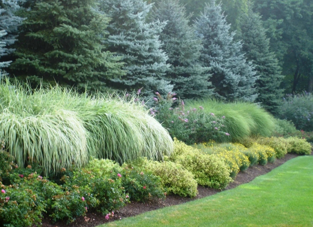 Эти же хвойные станут прекрасным фоном для растений или кустарников с серыми или желтыми листьями, например на фоне спиреи серой Грефшейн или чубушника Ауреус.