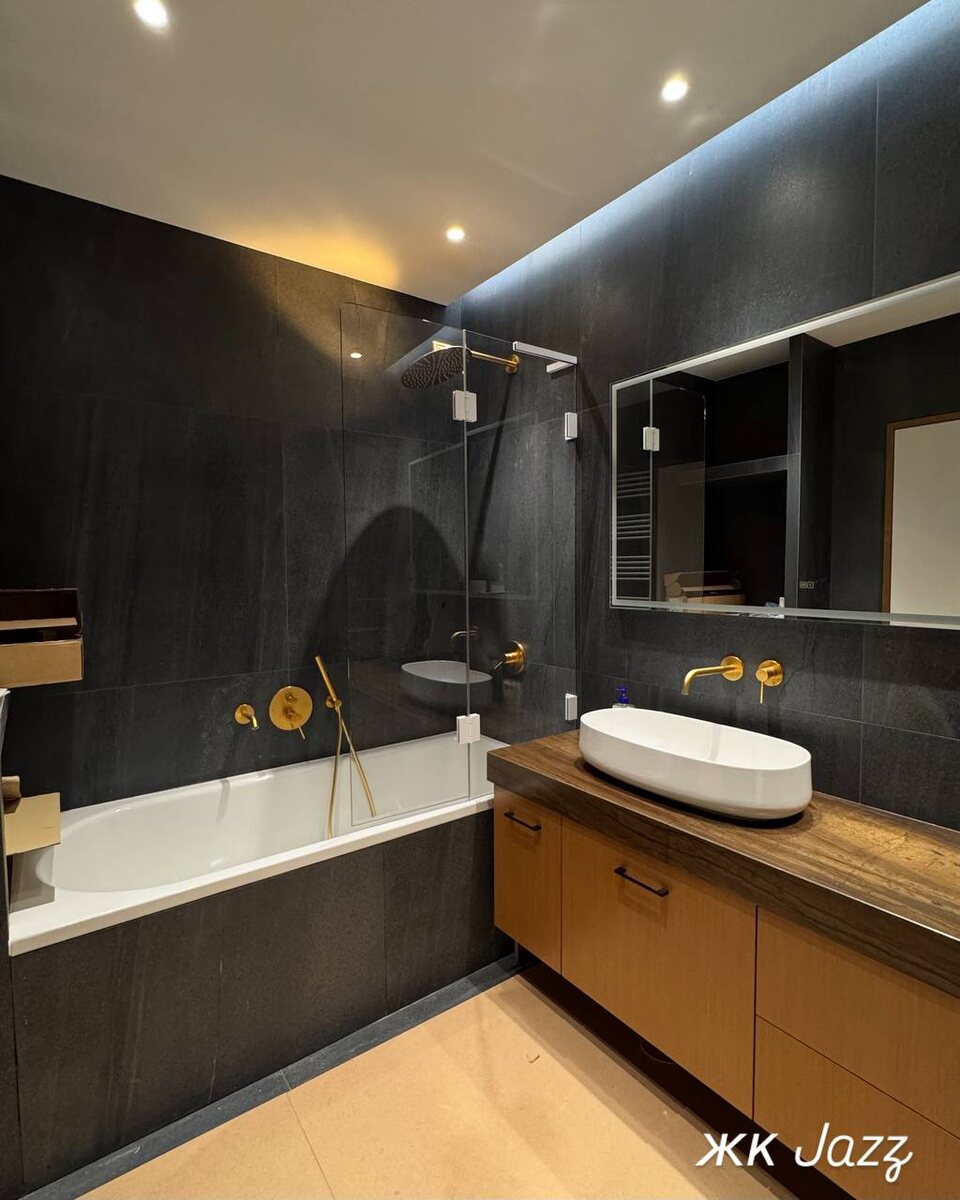 Обьект #жкjazz ⠀ Мастер-ванная Установили столешницу Зеркало И душевую перегородку. Последние штрихи и фотосессия📸 ⠀ ▪️▪️▪️ ⠀ Все фото и рендеры дизайна в нашем аккаунте уникальны - только с наших объектов!