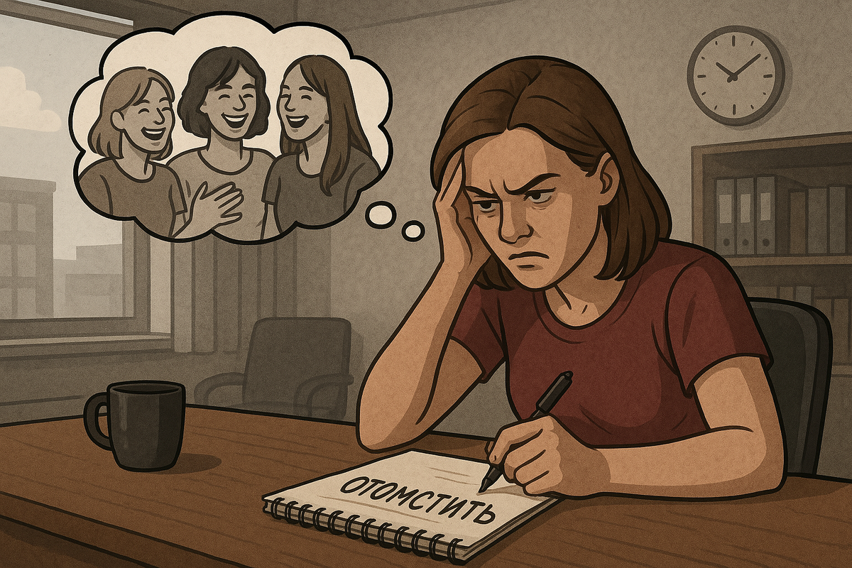 Проблема в том, что подругам (уже давно бывшим) было плевать. Они жили своей жизнью. А Катя тратила месяцы, годы, придумывая схемы — как бы насолить им, унизить их перед другими, отомстить. Могло показаться, что она «борется за справедливость», но в реальности она сама варилась в яде обид.