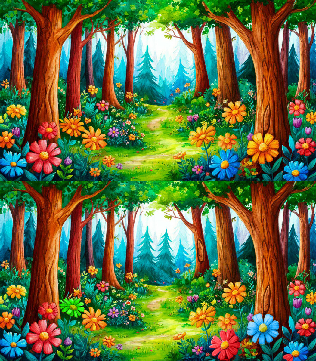 На картинках волшебный лес. Попробуй найти по 5 отличий на каждой из них. Хороший повод потренировать свою внимательность. Этот тест не только для детей, но и кому за 50+! Прокачай свой мозг! Ответ по стрелке вправо. Это первая картинка. Получилось? Давай продолжим! Предлагаю закрепить результат! Удалось ли найти все отличия? Приятного отдыха!