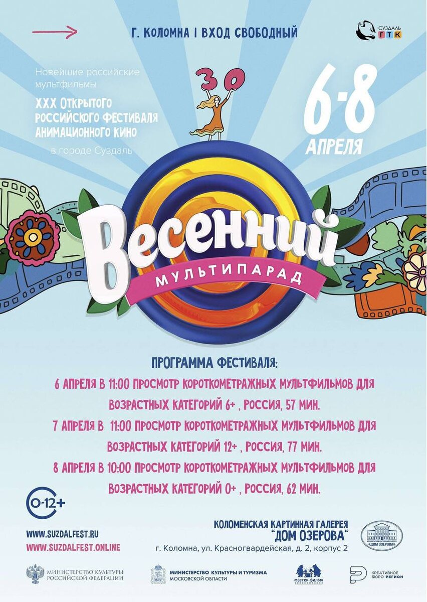 Новые российские мультфильмы покажут в Доме Озерова бесплатно! Фестиваль анимационного кино стартует завтра в Коломне. Все ленты — номинанты и призеры 13-й Всероссийской акции «Открытая Премьера» и XXХ Открытого российского фестиваля анимационного кино в Суздале — еще не выходили на широкий экран. Это уникальный шанс оценить новые мультфильмы одними из первых! Программа фестиваля: 🎬 6 и 8 апреля в 11:00 — мультфильмы, 6+, 57 мин. 🎬 7 апреля в 11:00 — мультфильмы, 12+, 77 мин. 🎬 8 апреля в 10:00 — мультфильмы 0+, 62 мин. 📌 Родители, берите на заметку пока каникулы. Вход свободный. #ГородскойОкругКоломна #Коломна #КоломнаОзёры #Подмосковье #НашеПодмосковье #Московскаяобласть