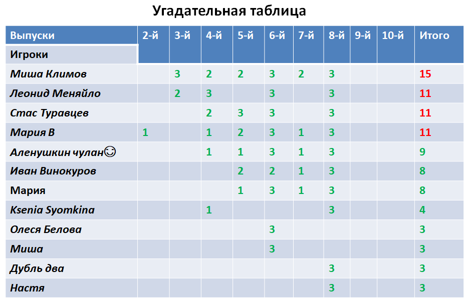 Сейчас наша соревновательно-угадательная табличка выглядит так: