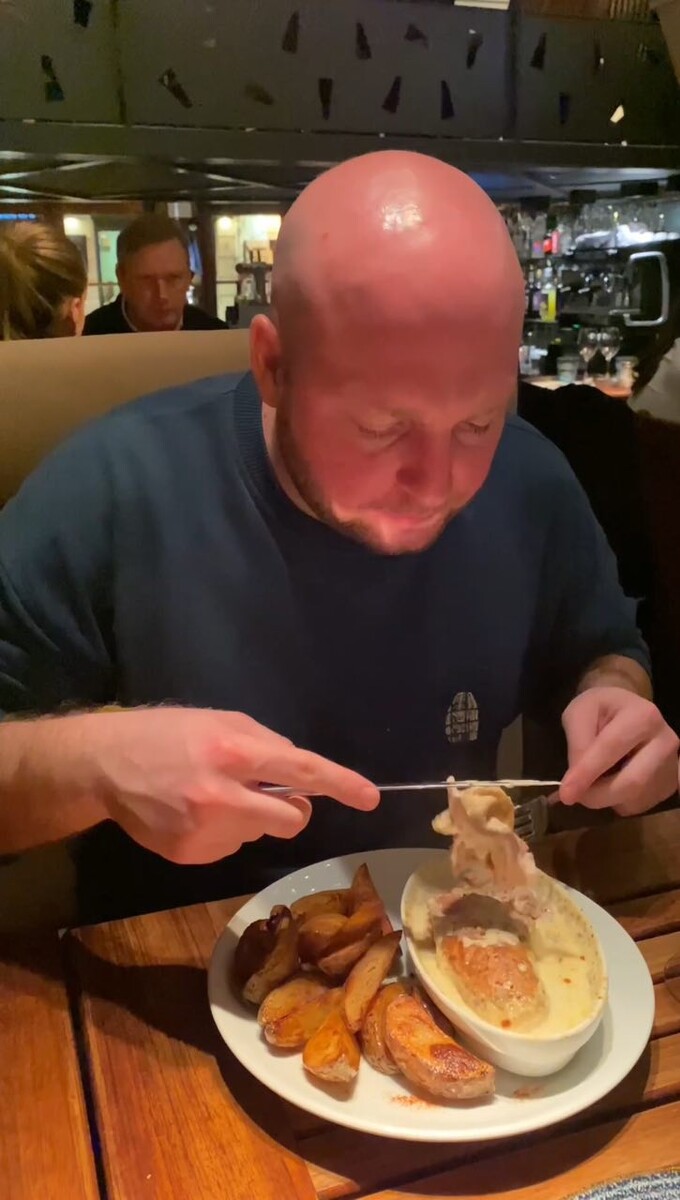 Блюдо называется “Saucisson Brioché” или “Saucisson de Lyon à la sauce moutarde”. Основной ингредиент – лионская колбаса (saucisson de Lyon). Она часто готовится из свинины с добавлением специй, иногда с фисташками или трюфелем. Соус – в данном случае это горчичный соус (sauce moutarde), который традиционно готовят на основе сливок, дижонской горчицы и специй. Остро, но не слишком, с легкой кислинкой. В качестве гарнира подали хрустящий запеченый картофель. Это традиционное блюдо из Лиона, которое часто встречается в bouchons – местных ресторанах с традиционной лионской кухней. Оно сытное, ароматное и с ярко выраженным вкусом горчицы. Собственно, в подобном месте я его и попробовал. Начинается такое блюдо от 20€, а ужин с таким блюдом в качестве основного, луковым супом и десертом вышел мне в 27€. Бокал местного красного вина Эрмитаж вышел еще примерно в 13€. Итого полноценный ужин в местном аутентичном ресторане с локальной кухней и вином за 40€ (~4000 р) на человека. Заплатили бы ил