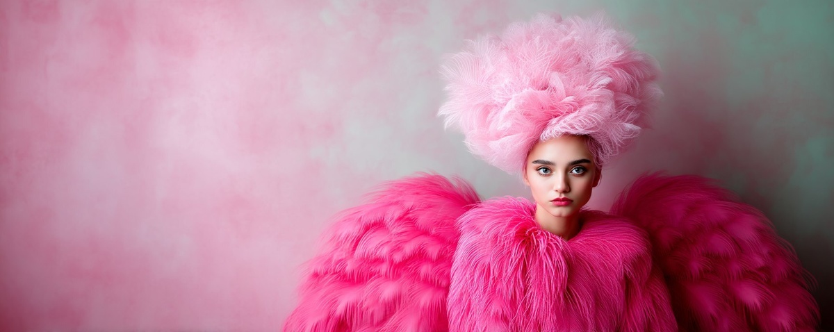 Создано на основе запроса: High-fashion photo of an angel in the style of pink flamingo with giant pompadour wings made from feathers