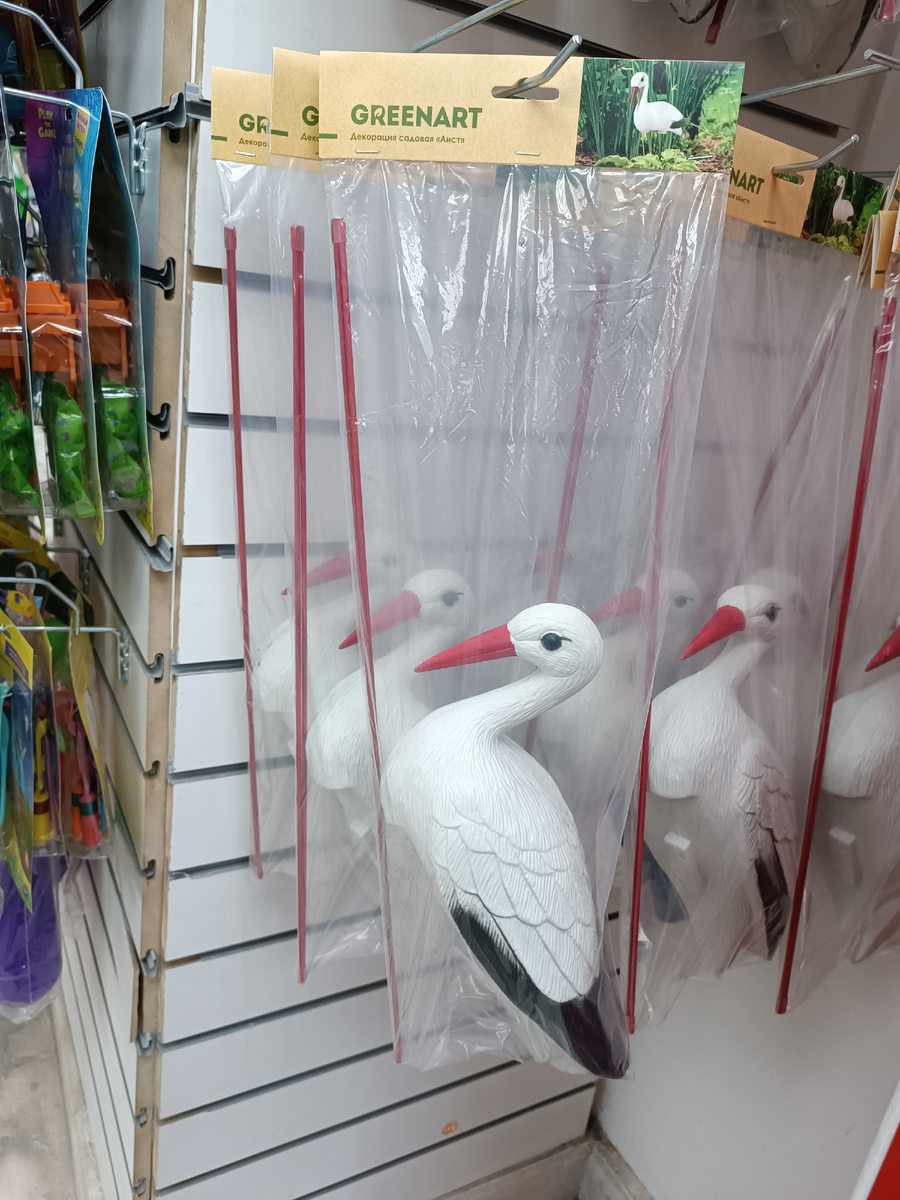 Посмотрите какие симпатичные аисты привезли на палочках.