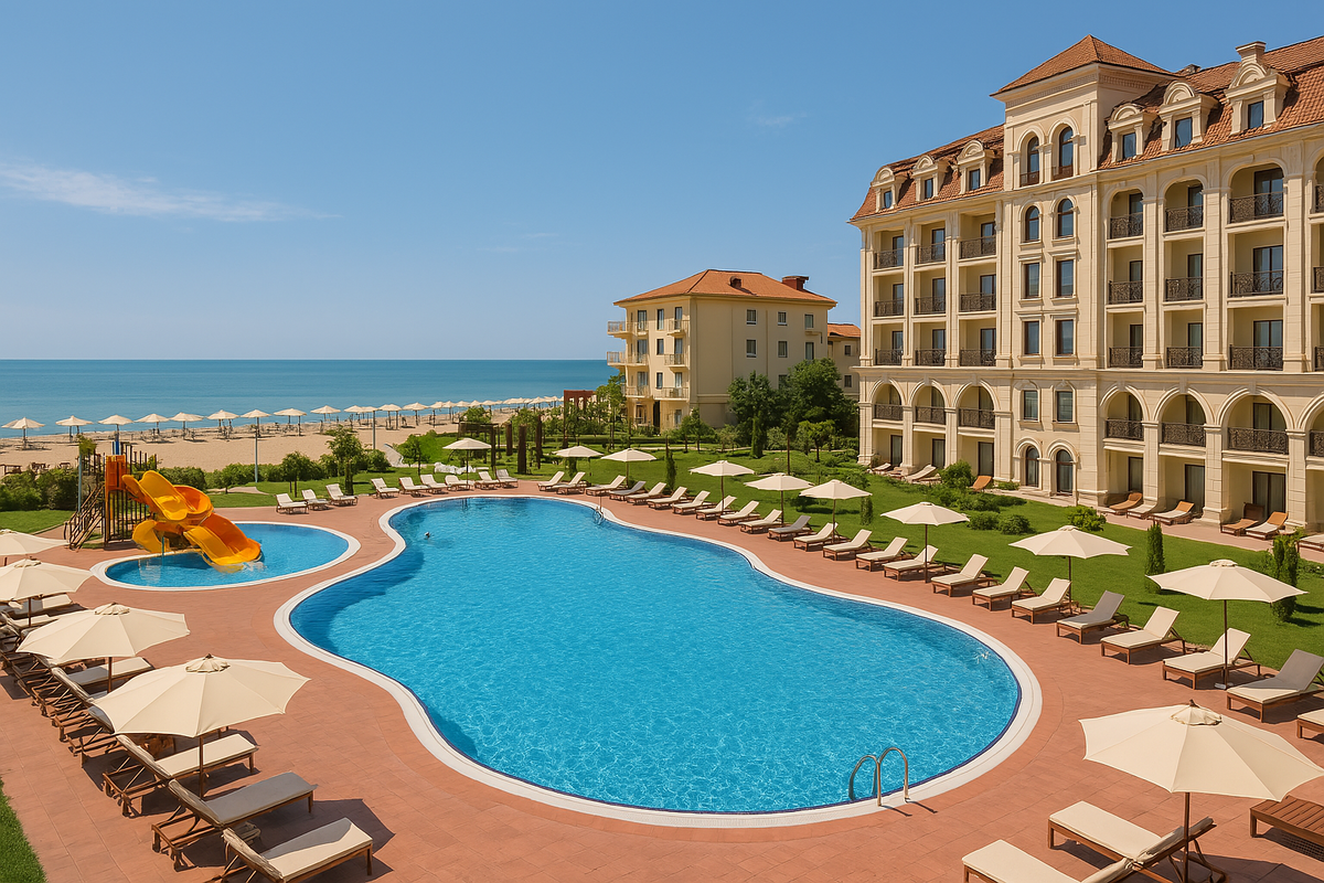 Современный отель с системой "всё включено", предлагающий бассейны, рестораны и анимацию.