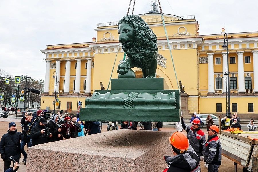 😎Знаменитые сторожевые львы, которые с 1832 года охраняют Дворцовую пристань, наконец-то вернулись на свои постаменты после реставрации.