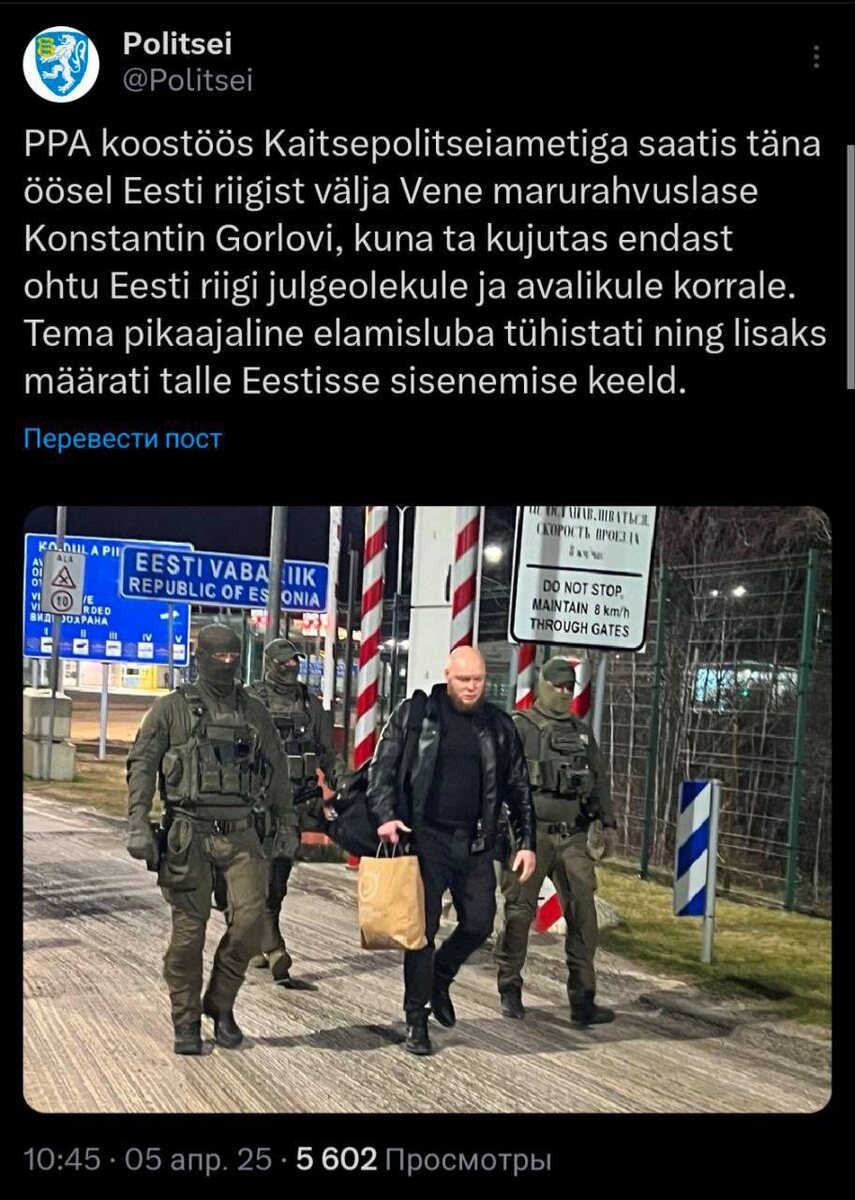 Эстония выслала россиянина Константина Горлова за показ флага «Спартака» с двуглавым орлом в TikTok, сочтя это угрозой.