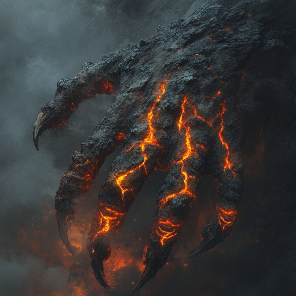 Создано на основе запроса: From the half-opened giant hellish gate, a large, terrifying, otherworldly creature's hand crawls out, covered in dark stone-like scales, glowing orange lava veins, sharp claws, misty smoke, dramatic lighting, high contrast. --- Автоперевод: Из полуоткрытых гигантских адских ворот, больших, ужасных, потусторонних рук, заполняется, покрыты темными каменными чешуйками, светящимися оранжевыми лавами, острыми когтями, туманным дымом, драматическим освещением, высоким контрастом. Как тебе генерация? 🤔 https://dzen.ru/id/65c0c65c86e4f837c27b24d7 #ИИ #AI #нейросеть #midjourney #art