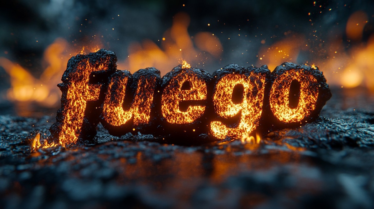 Создано на основе запроса: "Team fuego" Word in liquid Lava style ,some fire details , black background,Cinematic, hyper detail, Vfx , CGI