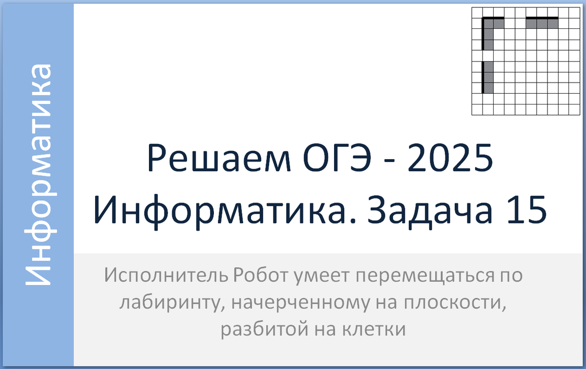 Исполнитель Робот умеет перемещаться по лабиринту, начерченному на плоскости, разбитой на клетки. Между соседними (по сторонам) клетками может стоять стена, через которую Робот пройти не может.