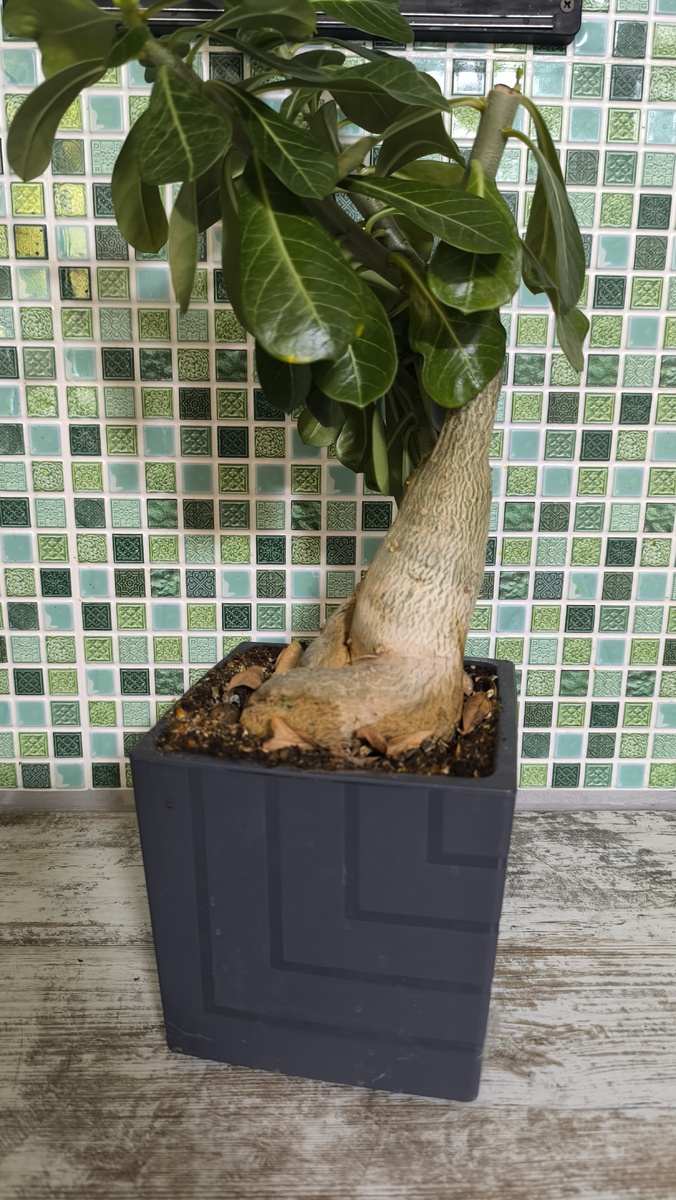 В этой статье кратко описаны способы прививки Адениума . Теперь постараюсь рассказать как я делаю прививки для себя и не только . Зачем они мне? Стараюсь делать дубли любимых сортов на случай если с прививкой что-то случится то дубль будет. Вообще как писал один классик: «Да, человек Адениум смертен, но это было бы ещё пол беды. Плохо то, что он иногда внезапно смертен, вот в чём фокус!» И это абсолютная правда, иногда они нас покидают очень внезапно и скоропостижно. Ну и при наличии свободных подвоев делаю прививки на продажу, а почему бы и нет. Это единичные экземпляры деньги от которых идут исключительно на растения. Ну да я отвлеклась. Сегодня у меня вот такой красивый подвой. Поливала я его неделю назад, так как при операции мы снимем скальп полностью и воду будет нечем испарять Зимовал в доме на даче без дополнительной подсветки, а выглядит вполне себе отлично . Цвёл так Ярко но... Привой для него брала вот от этого сорта Entrancing. По идее сохраняется цвет но меняется факту
