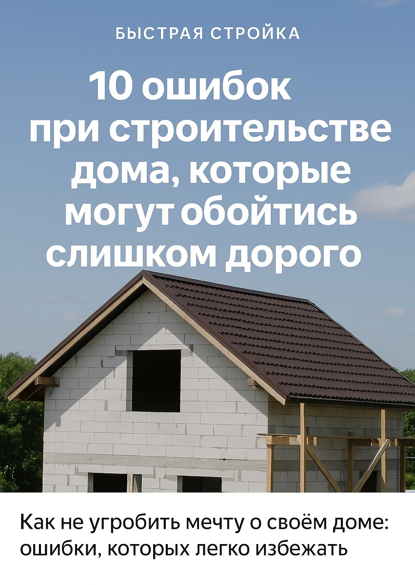 Мечтаете о своём доме? Вот на чём чаще всего «прогорают» новички. Эти ошибки могут стоить вам сотен тысяч, лучше знать о них заранее. Приветствую тебя дорогой читатель! Если вы задумывались о строительстве собственного дома — это отличный шаг. Дом за городом действительно станет новой главой в вашей жизни, ведь это: больше пространства, меньше шума, своя территория! Но чтобы мечта не превратилась в бесконечную стройку и непредвиденные расходы, важно заранее знать, где можно оступиться. В этой статье я собрал самые частые ошибки, которые совершают по незнанию в строительстве. Прочитайте внимательно, возможно вы избежите проблем, с которыми сталкивались сотни людей до вас. 1. Неправильный выбор участка Выбор участка — это основа будущего комфорта. Часто покупатели ориентируются только на цену или внешний вид, забывая о таких аспектах, как: 2. Недооценка бюджета Реальная стоимость стройки почти всегда выше, чем в планах. Заложи запас минимум в 10–20%. 3. Строительство без проекта Без чё