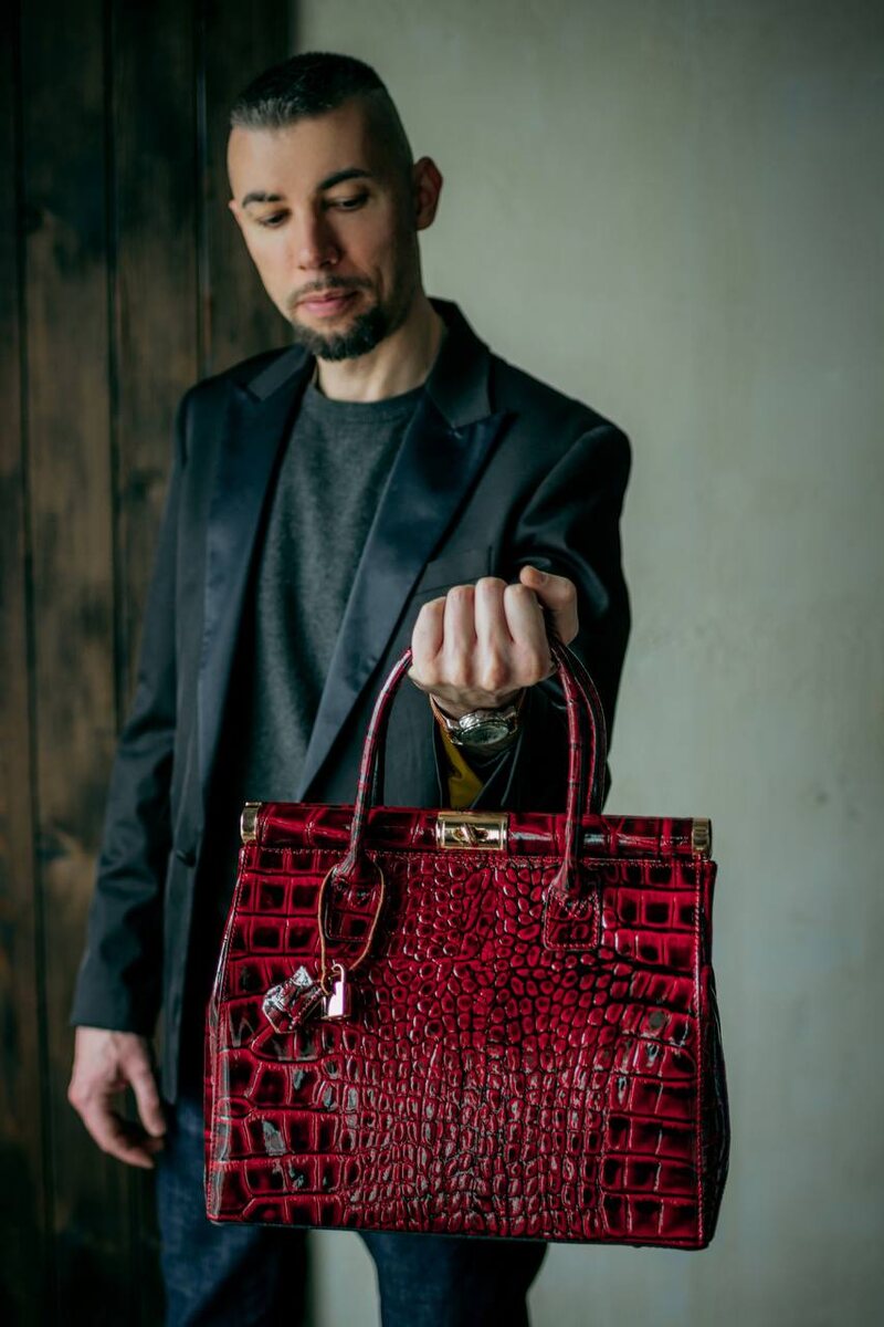Женская сумка саквояж цвет “rubino” из лакированной натуральной кожи с тиснением «крокодил»арт