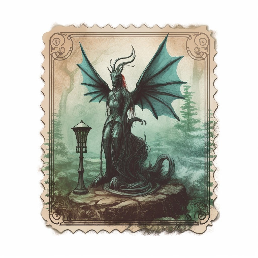 Создано на основе запроса: a postage stamp, magic the gathering art style, no background, high definition