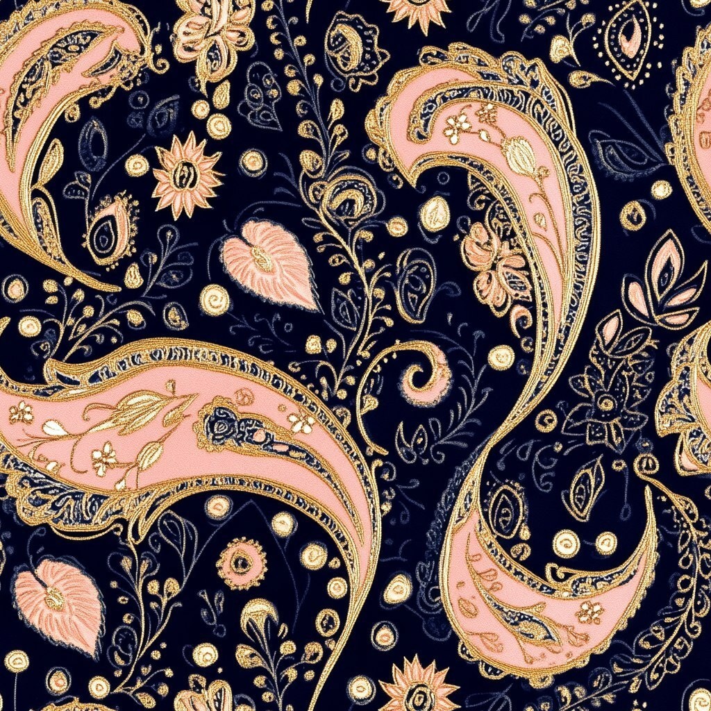 Создано на основе запроса: silk paisley pattern, peach pink, gold and midnight blue