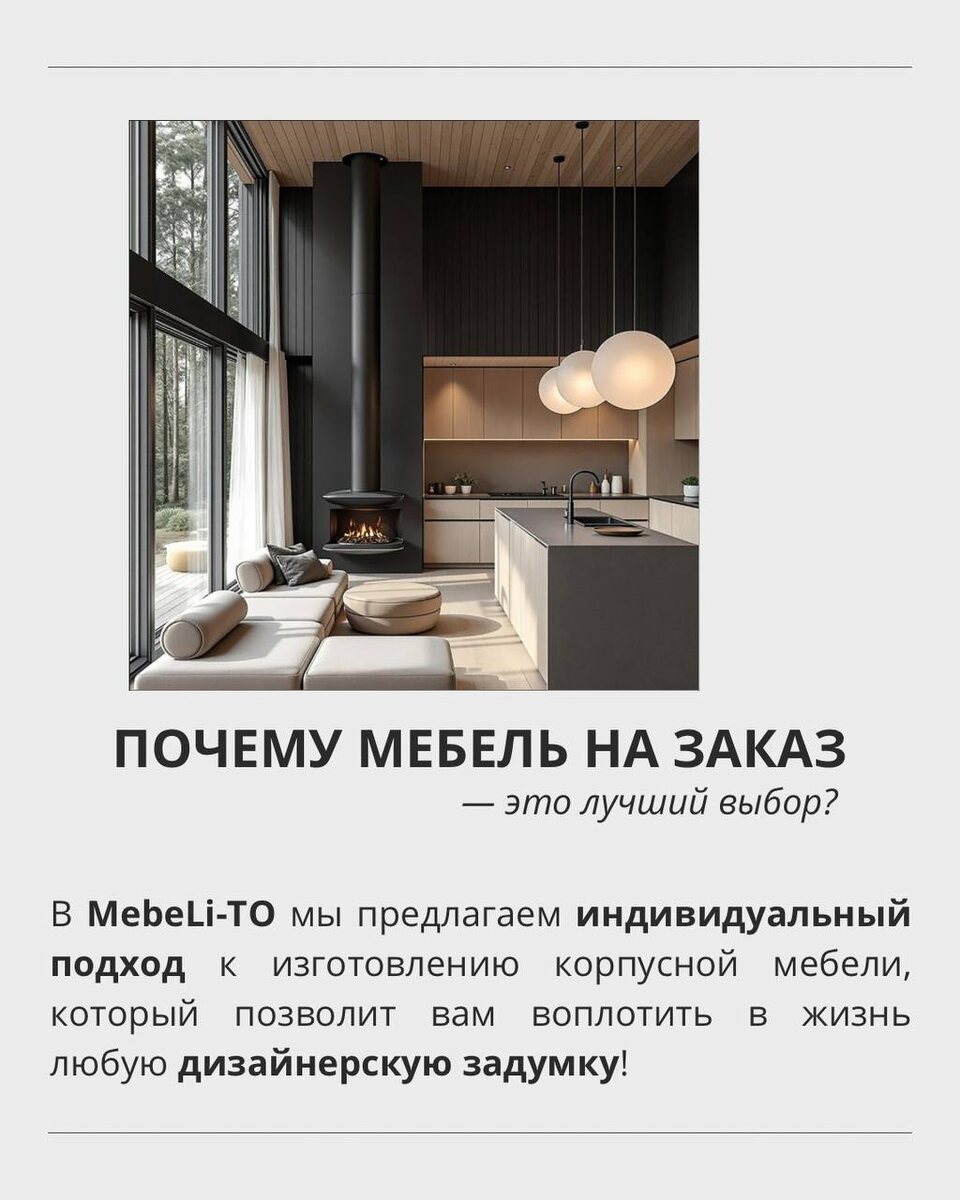 🤔 Устали от стандартной мебели, которая не вписывается в ваш интерьер или не соответствует вашим потребностям? В MebeLi-TO мы предлагаем