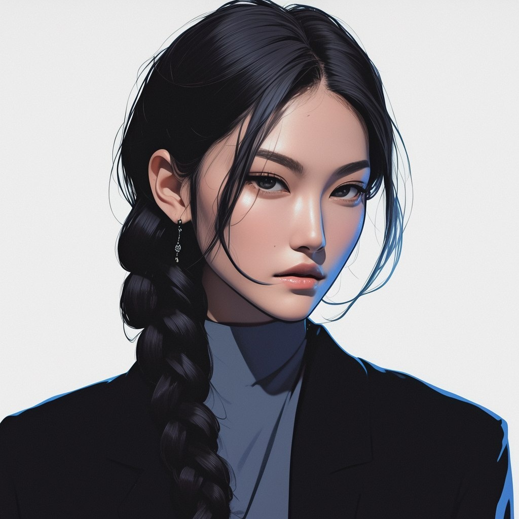 Создано на основе запроса: A reserved and serious japanese female accountant. Female character, long tied braided hair, simple, jet black. She's wearing a clean suit - a salary woman with pale cheeks and a serious look. She has beautiful earrings. Concept art illustration, cartoon art style, comic book quality, gritty comic book art style, airbrush illustration style, semi-realistic manwha art style, digital portrait, detailed shadows, detailed colors, ultrahigh definition, --- Автоперевод: Зарезервированный и серьезный японский женский бухгалтер. Как тебе такая иллюстрация? 🤔 https://dzen.ru/id/65c0c65c86e4f837c27b24d7 #ИИ #AI #нейросеть #midjourney #art