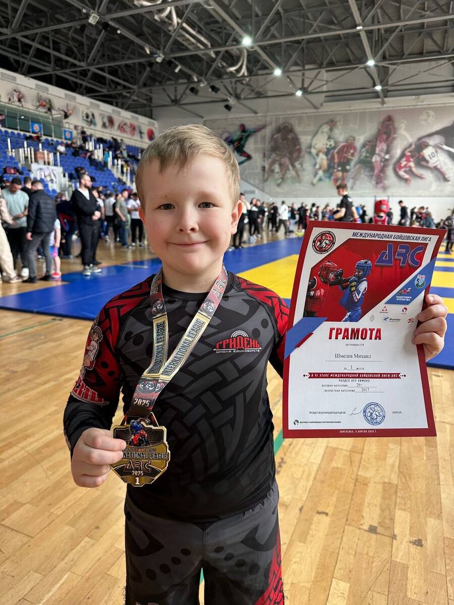 🥇 Михаил Шмелёв, ученик 1 «А» класса, занял 1 место на 6 этапе Международной бойцовской лиги ARC в разделе Абсолютный реальный бой (АРБ) без кимоно!