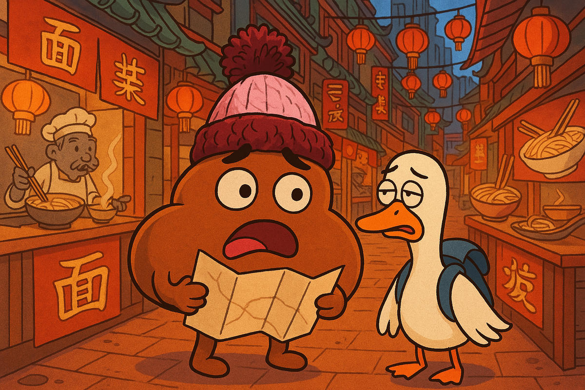 «Я — не дерево, рожденное, чтобы всегда стоять на одном месте и не знать о том, что находится за ближайшей горой.» Джек Лондон Гусенок, словно истинный зануда, сразу же достал карту и усталым циничным жестом всучил ее Говнёнку, перевалив ответственность на новоиспеченного товарища. Читай давай, мол, в каком векторе путь- дорогу держать. «Но я не умею! И вообще очень хочу кушать! Вон магазинчик, где продают китайскую лапшу, потопали навернём!» - виновато выдавил Коричневый. Пернатый закатил глаза и поддался искушению. Он думал завести лекцию о том, что стыдно в таком возрасте быть безграмотным, не ориентироваться в пространстве и времени и иметь столь испуганно-блаженное выражение физиономии. Но лапа наступила на канализационный люк, тельце предательски крякнуло, схватив Говнёнка за мягкий бок, и провалилось в темные катакомбы. Плюх! «Пожрали макарошки! Шшшффффф! Все из-за тебя, шоколадная картошка!» -заистерил Гусь. Какашёнок спокойно сдернул с крыла сумку друга и надыбал там спички. З