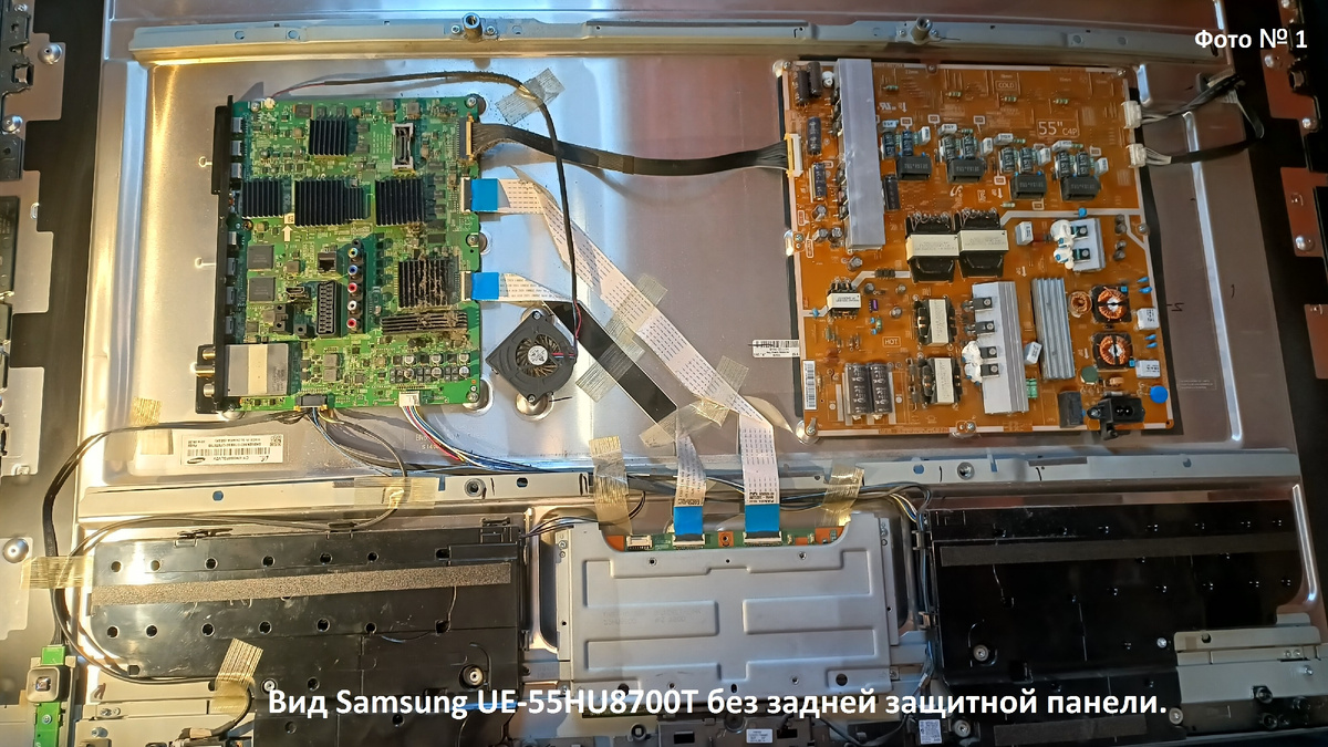 Как снять заднюю панель в телевизоре Samsung UE-55HU8700T и произвести очистку от пыли платы и вентилятор.