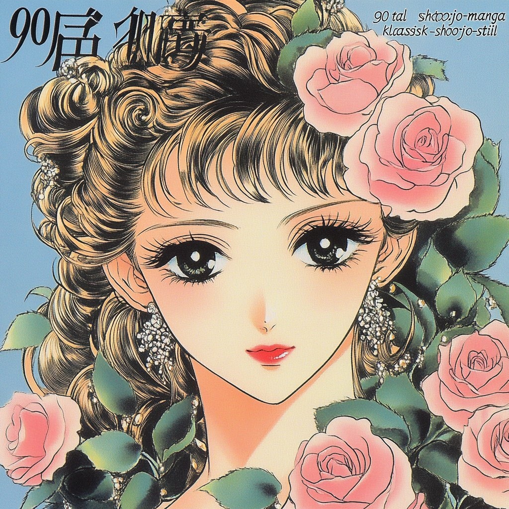 Создано на основе запроса: en manga 17-årig tjej målad i stilen "90-tals shōjo-manga" "klassisk shōjo-stil" 90-tals shōjo-romantikstil mahou