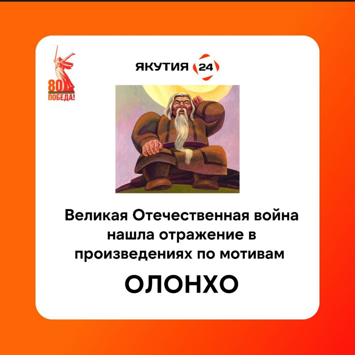 В ответ на пост ⭐️ Путь к Победе: 80 фактов о Великой Отечественной войне Факт №48: Великая Отечественная война нашла отражение в произведениях по мотивам якутского героического эпоса олонхо. Многие олонхосуты участвовали в войне, были ветеранами тыла. В произведениях по мотивам олонхо мифологическое противопоставление айыы (добро) и абаасы (зло) переместилось на советских людей и немецко-фашистских агрессоров. Одно из таких произведений — «Улуу буойуттар уон алта ини-биилэр» («Великие воины — 16 братьев») Е. С. Сидорова, написанное в 1940-х годах. Кроме того, в годы Великой Отечественной войны собирались материалы устного творчества, в частности, сказительской традиции олонхо. В 1941 и 1946 годах в 13 районах Якутии было зарегистрировано 83 олонхосута и 396 текстов олонхо. До Дня Великой Победы осталось 33 дня! #80фактов_о_Победе_Як24 @Якутия 24
