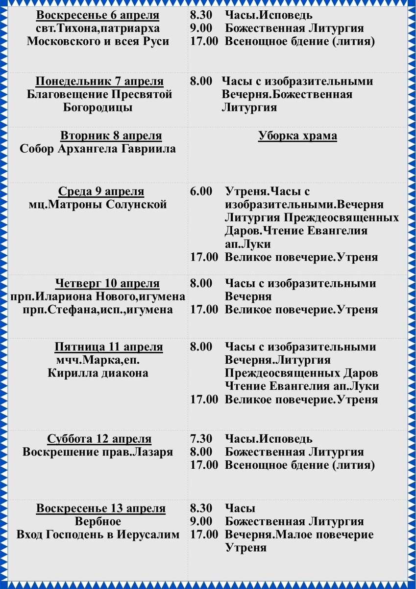 Расписание богослужений Крестовоздвиженского храма города Вязники
