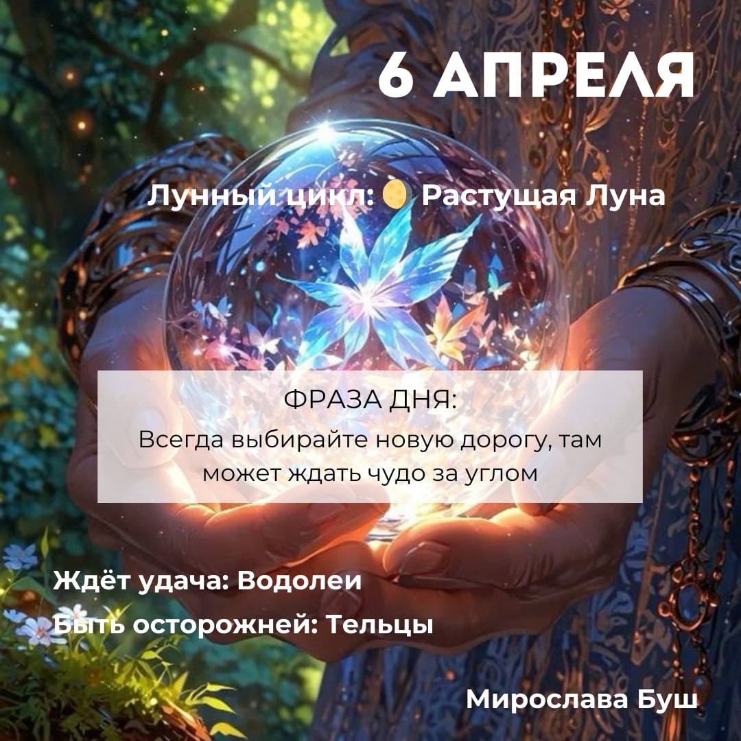 6 апреля РЕКОМЕНДАЦИИ: 🧹 День подойдет для очищения пространства. Добавьте в воду немного соли (лучше четверговой) и вымойте ею пол, особенно по углам. Станет легче дышаться. ❌ Завтра не стоит грубить тем, кто старше вас. Особенно, кто по возрасту годится вам в родители. Очень плохая примета. 🧩 Не пересчитывайте деньги и не давайте взаймы. Лучше купите, не глядя на цену, что-то маленькое, но приятное для себя. И неделя будет в удовольствие. ✉️ Подписаться на Мирославу Ссылка здесь 🤍 Вступить в закрытый клуб #прогнознадень